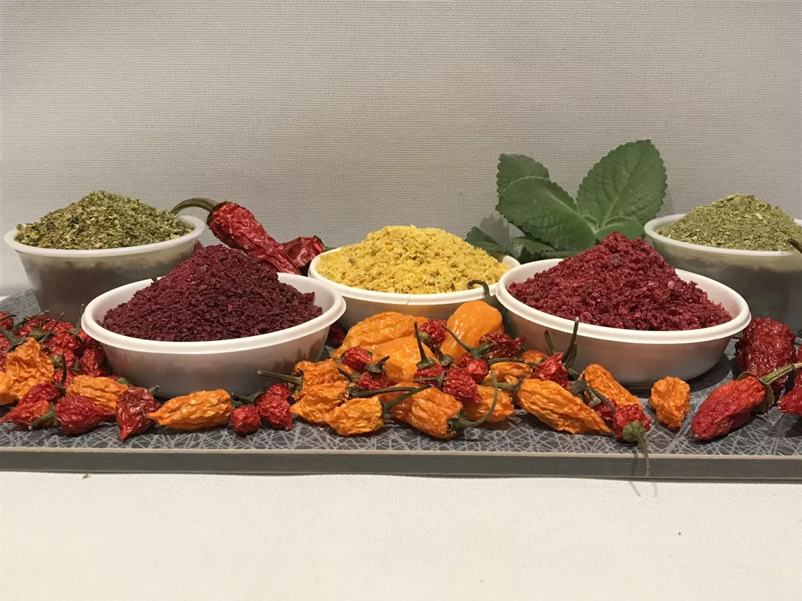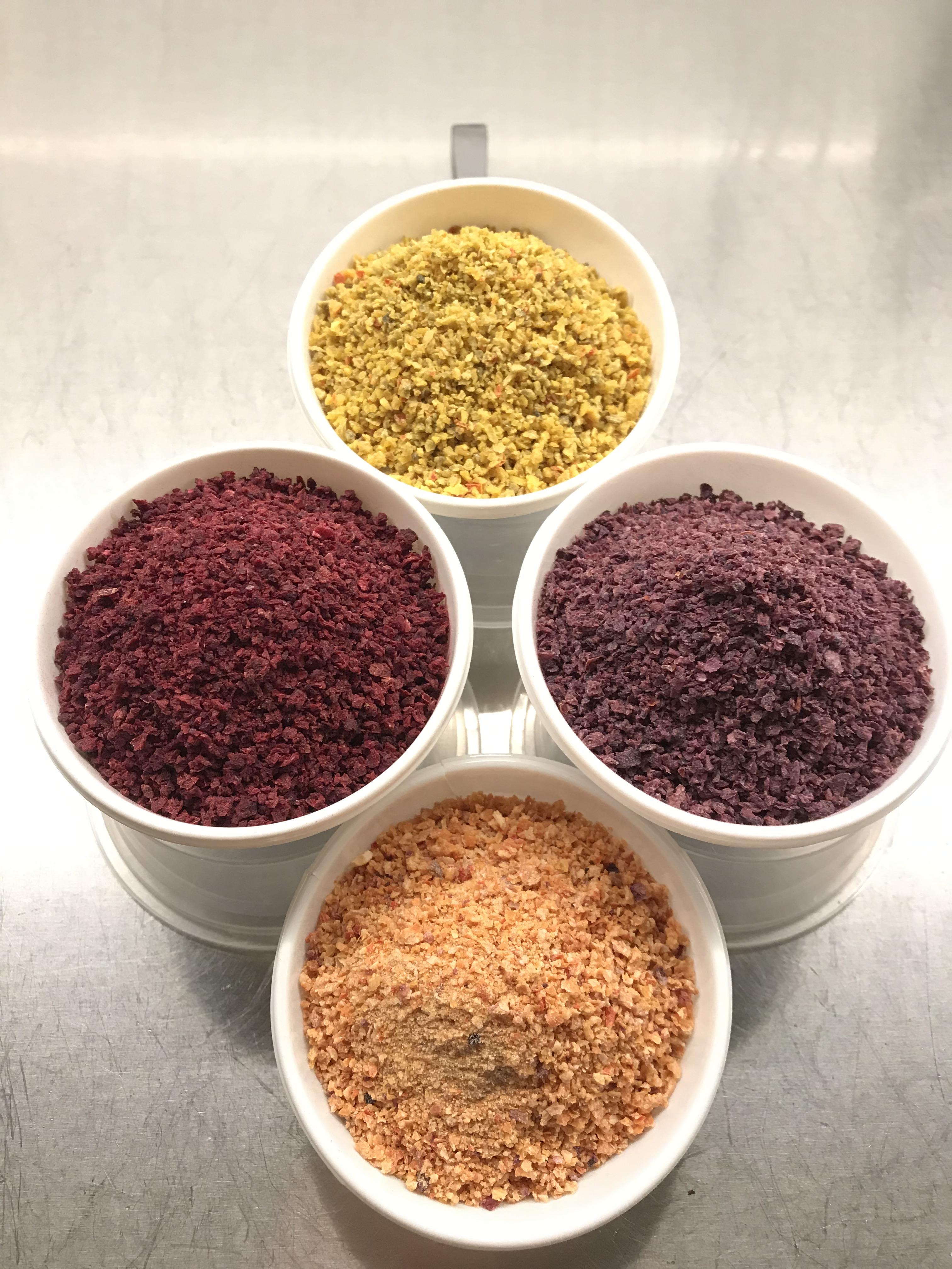 Unika torkade kryddor tillverkade av grönsaker, örtkryddor, svamp och bär. Krispiga och färgglada